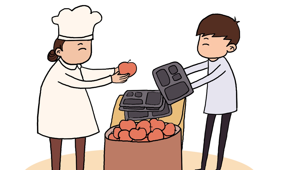 Under the initiative, students at Luoyang Normal University can enjoy daily buffets at the school's canteen, and exchange their clean plates for fruit.