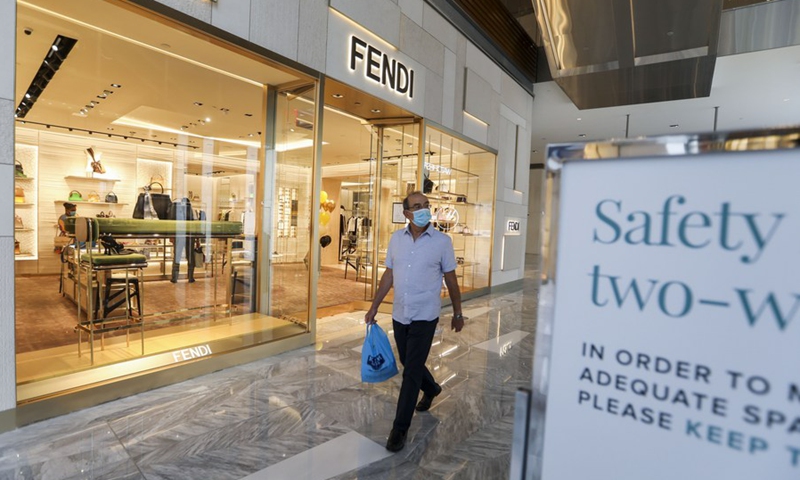 People browse stores in Hudson Yards shopping center in New York City, the United States, Sept. 9, 2020. (Xinhua/Wang Ying)