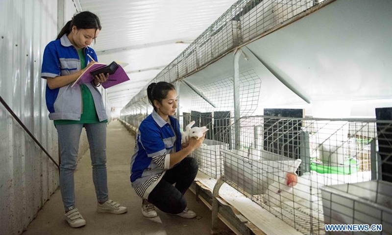 Workers keeps records at a rabbit farm in Hotan County of Hotan Prefecture, northwest China's Xinjiang Uygur Autonomous Region, Aug. 31, 2019. Northwest China's Xinjiang Uygur Autonomous Region created some 2 million new jobs for its residents from 2014-19. Since the 18th National Congress of the Communist Party of China (CPC) in 2012, Xinjiang has been vigorously implementing employment projects and enhanced vocational training, and has been expanding employment channels and capacity. From 2014-19, the total number of people employed in Xinjiang rose from 11.35 million to 13.3 million, according to a white paper on employment and labor rights in Xinjiang published by the State Council Information Office recently. More and more rural laborers are being employed in cities after skill training. The average annual increase in urban employment is more than 471,200 people, with 148,000 in southern Xinjiang, accounting for 31.4 percent. Photo:Xinhua