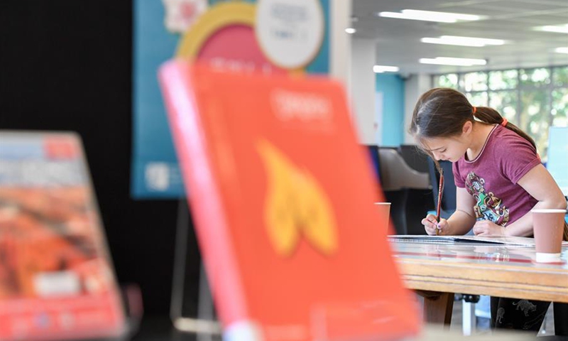 A girl experiences calligraphy during a medley of traditional Chinese cultural activities held in Lower Hutt library, Wellington, New Zealand, Sept. 30, 2020, to celebrate the Mid-Autumn Festival, which falls on Oct. 1 this year. (Xinhua/Guo Lei)