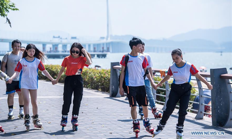 People skate at a park in Shenzhen, south China's Guangdong Province, Oct. 2, 2020. (Xinhua/Mao Siqian)