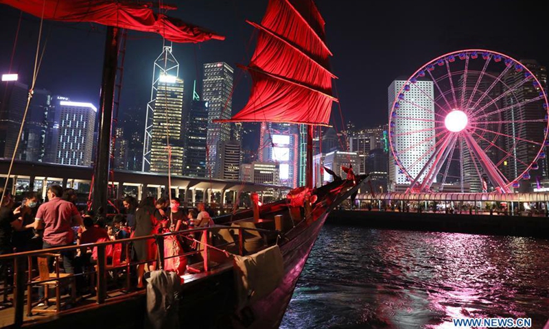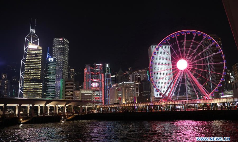 Photo taken on Oct. 3, 2020 shows the night view of Victoria Harbour in south China's Hong Kong, Oct. 3, 2020.(Photo: Xinhua)