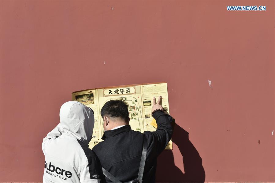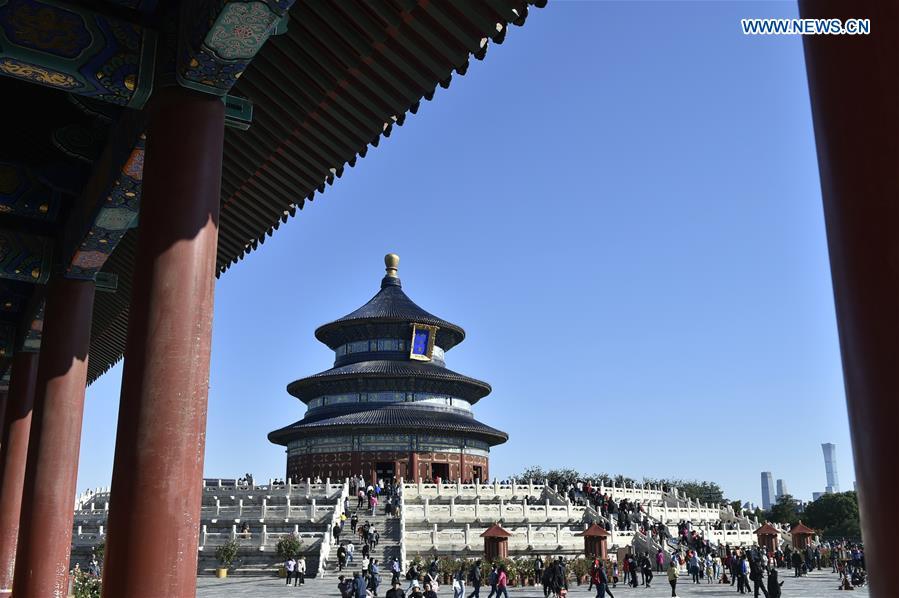 Tourists visit the Temple of Heaven during the National Day and Mid-Autumn Festival holiday in Beijing, capital of China, Oct. 4, 2020. (Xinhua/Lu Peng)