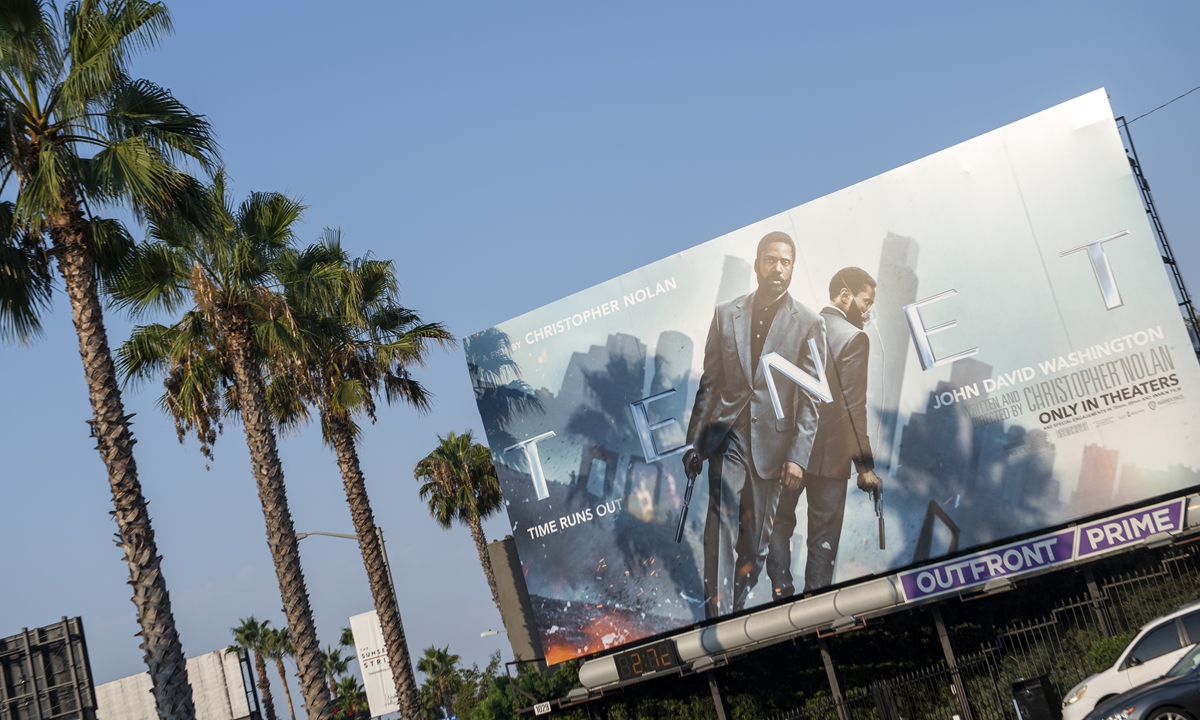 A billboard for Christopher Nolan’s film Tenet on the Sunset Strip in West Hollywood on August 19. Photo: AFP