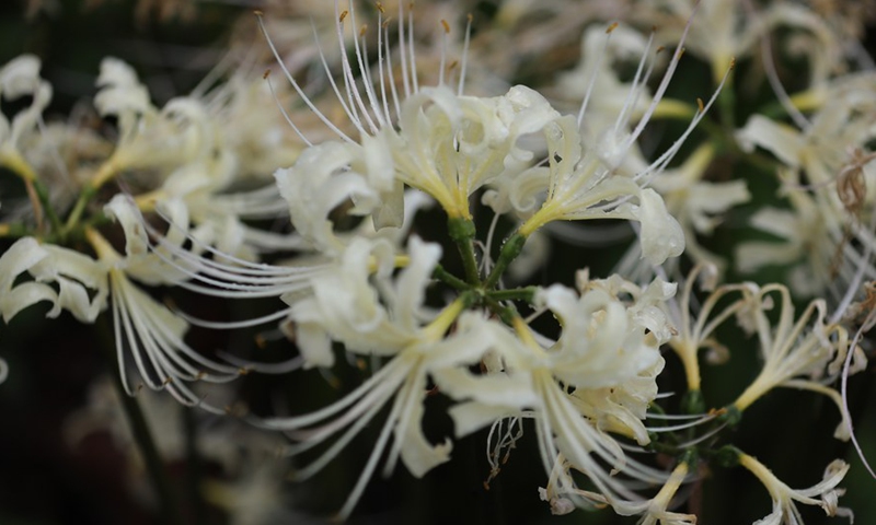 Photo taken on Oct. 7, 2020 shows white spider lilies at Gongendo Park in Satte, Saitama Prefecture of Japan. (Xinhua/Du Xiaoyi)