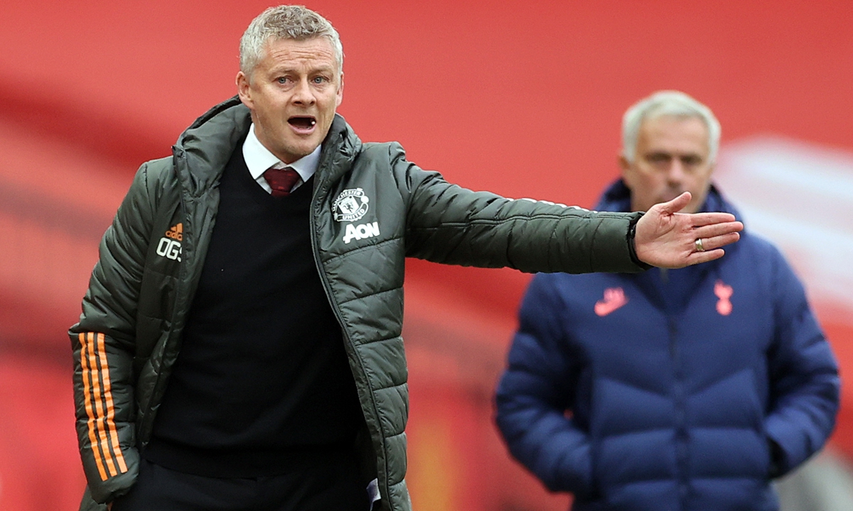 Manchester United manager Ole Gunnar Solskjaer (left) and Tottenham Hotspur manager Jose Mourinho in Manchester, England on October 4. Photo: VCG