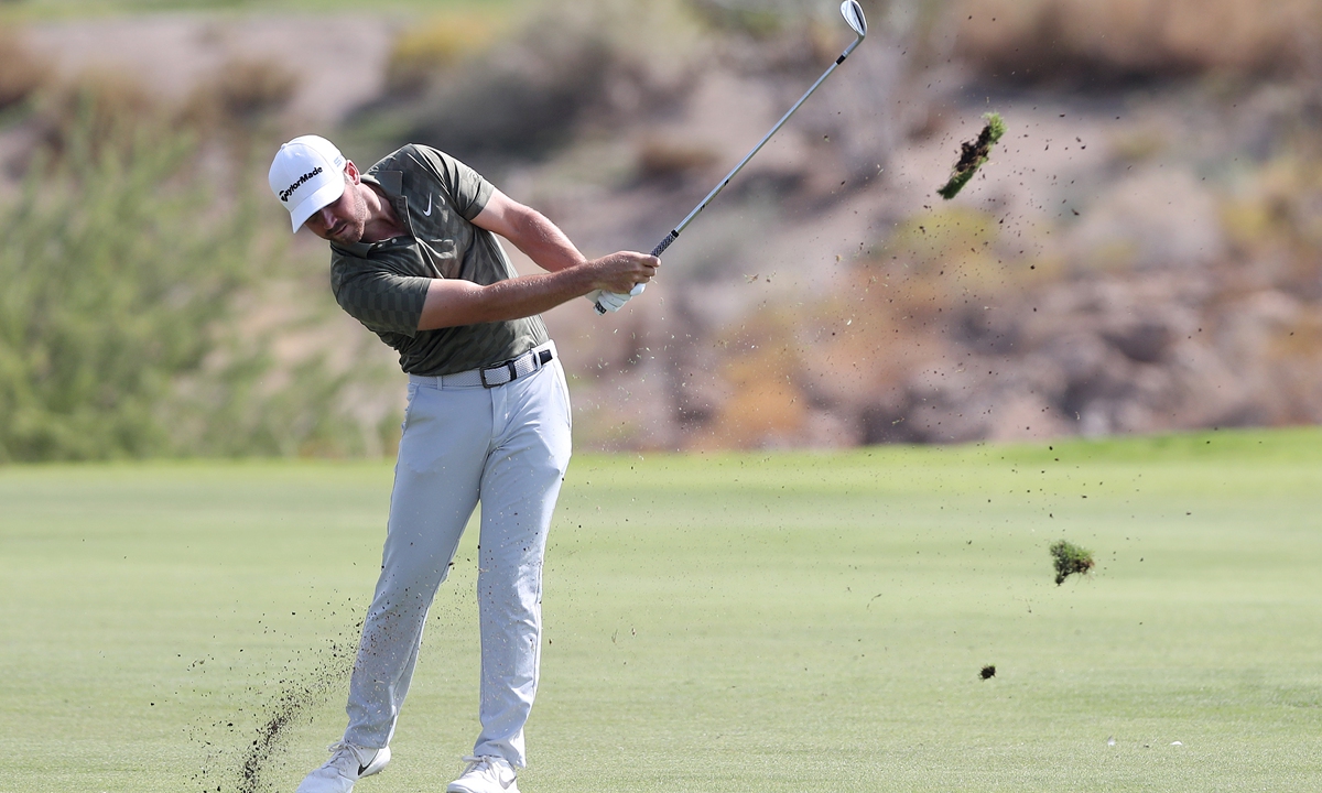 Matthew Wolff hits from the fairway on the 18th hole during Round 3 of the Shriners Hospitals For Children Open on Saturday in Las Vegas. Photo: VCG