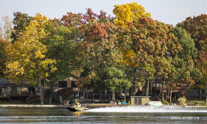 People enjoy water sports on Lobdell Lake in Genesee County, Michigan, the United States, on Oct. 10, 2020. (Photo by Joel Lerner/Xinhua)