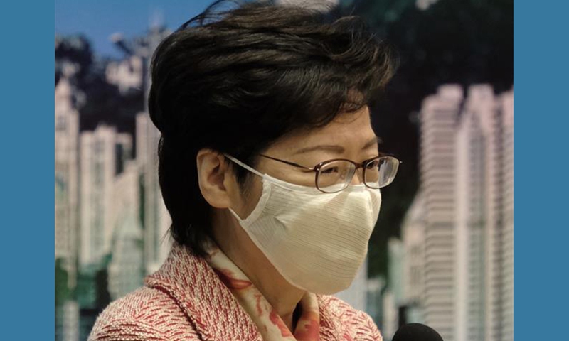 Chief Executive of the Hong Kong Special Administrative Region (HKSAR) Carrie Lam speaks at a press conference in Hong Kong, south China, Oct. 6, 2020. Carrie Lam said Tuesday that the HKSAR government will continue to take out the "black sheep" in the education sector after a school teacher was deregistered for spreading "Hong Kong independence" in the classroom. (Xinhua/Lui Siu Wai)