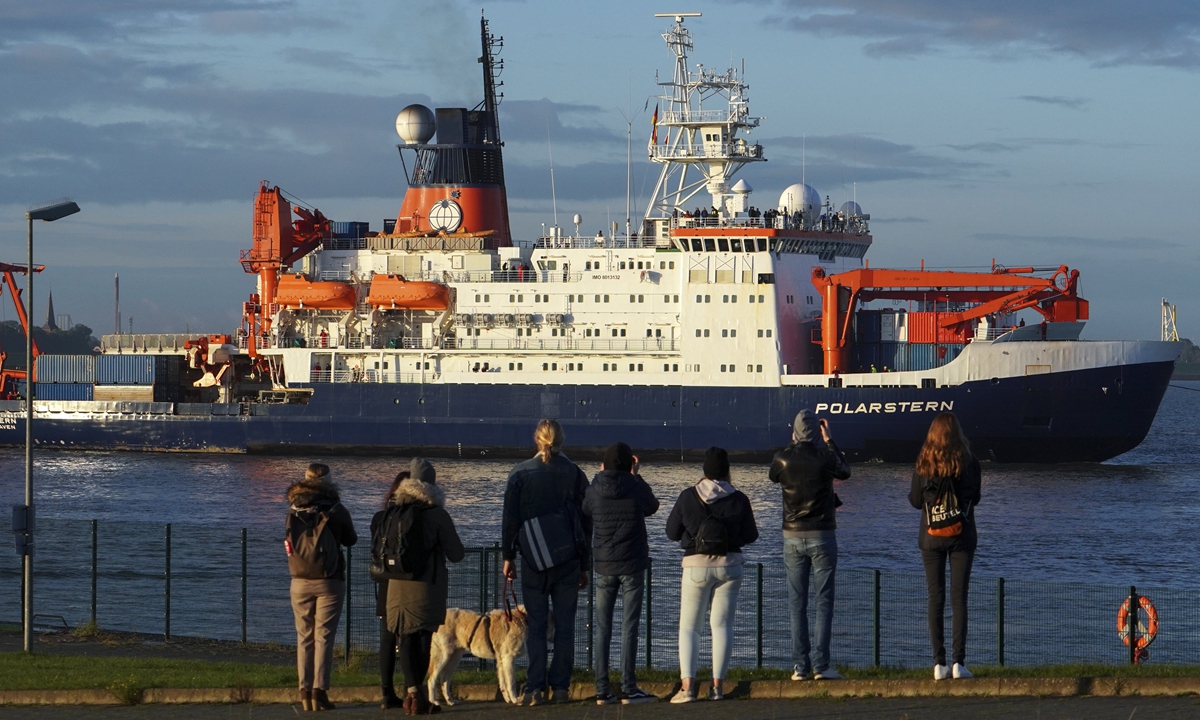 People watch as German icebreaker and research vessel "Polarstern" arrives at the harbour of nothern German town of Bremerhaven, on Monday, after a year-long mission, the biggest Arctic expedition in history, bringing home observations from scientists that sea ice is melting at a "dramatic rate" in the region. Photo: AFP