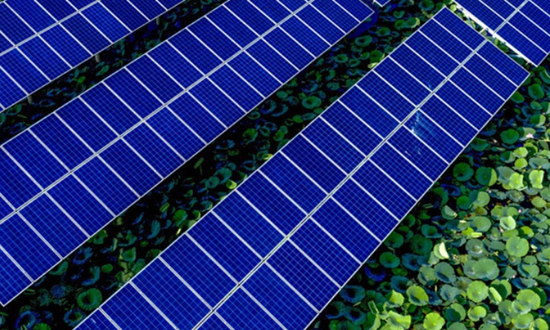 The undated photo shows the solar energy panels installed in a village in Lu Jiang county in Hefei, capital city of Anhui Province of China. (Xinhua photo)