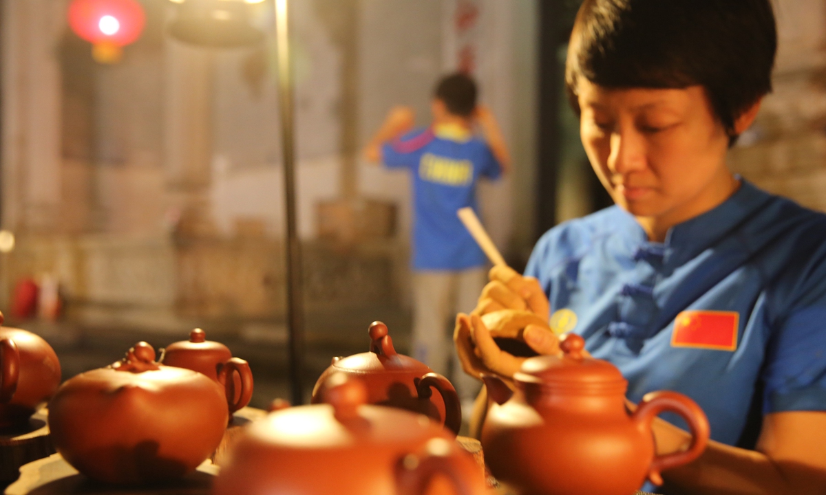 Chaozhou is a city rich with various intangible cultural heritages. Handmade red clay teapot is part of the distinctive teaware of Chaozhou. Making these teapots completely relies on a craftsman's hands and experience. The making of each pot involves more than 60 steps, while the material used to create the pot is a red-colored mineral often discovered from the Phoenix Mountains of Chaozhou.