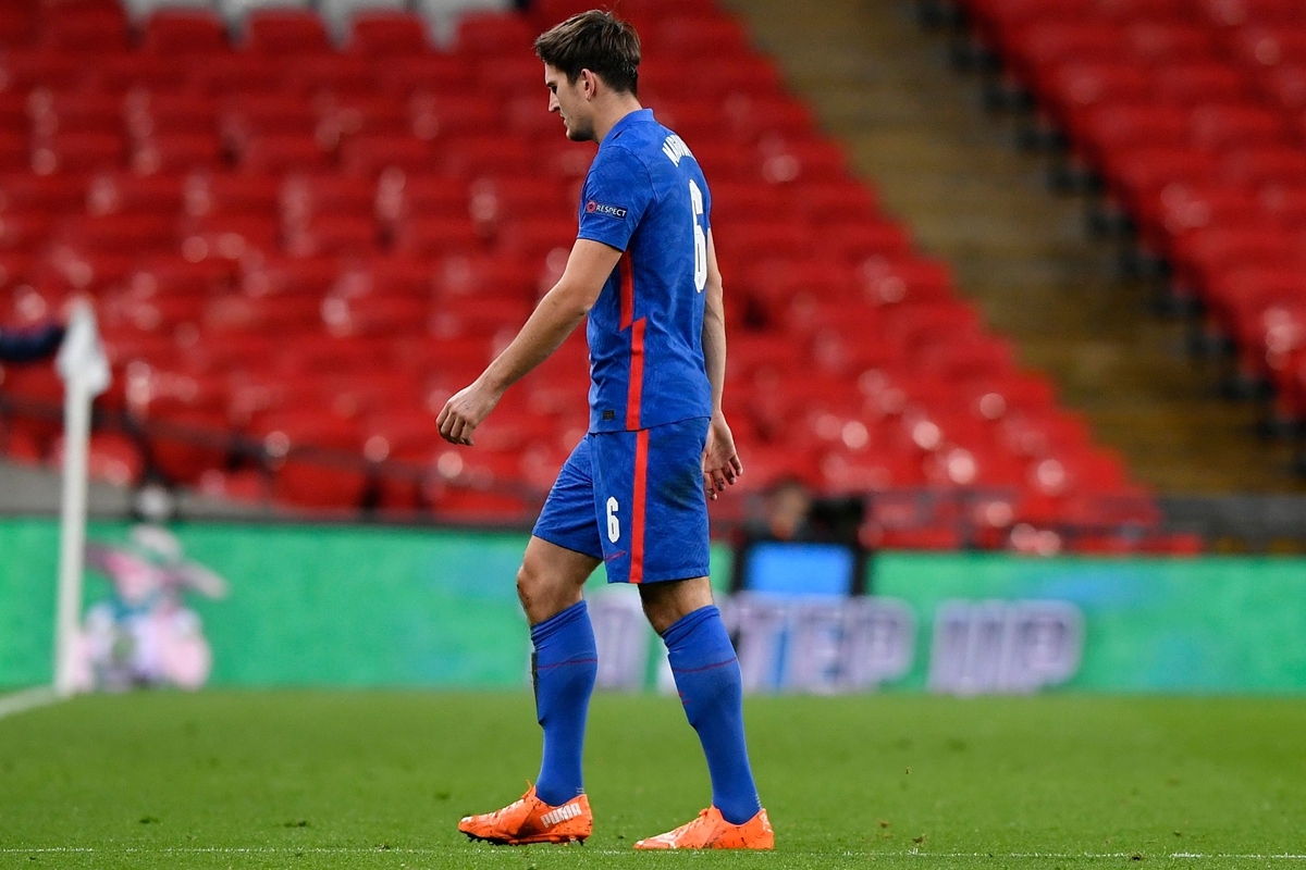 England defender Harry Maguire walks off after getting a red card for a tackle on Denmark striker Kasper Dolberg during the UEFA Nations League match between England and Denmark at Wembley Stadium in London on Wednesday. Photo: VCG