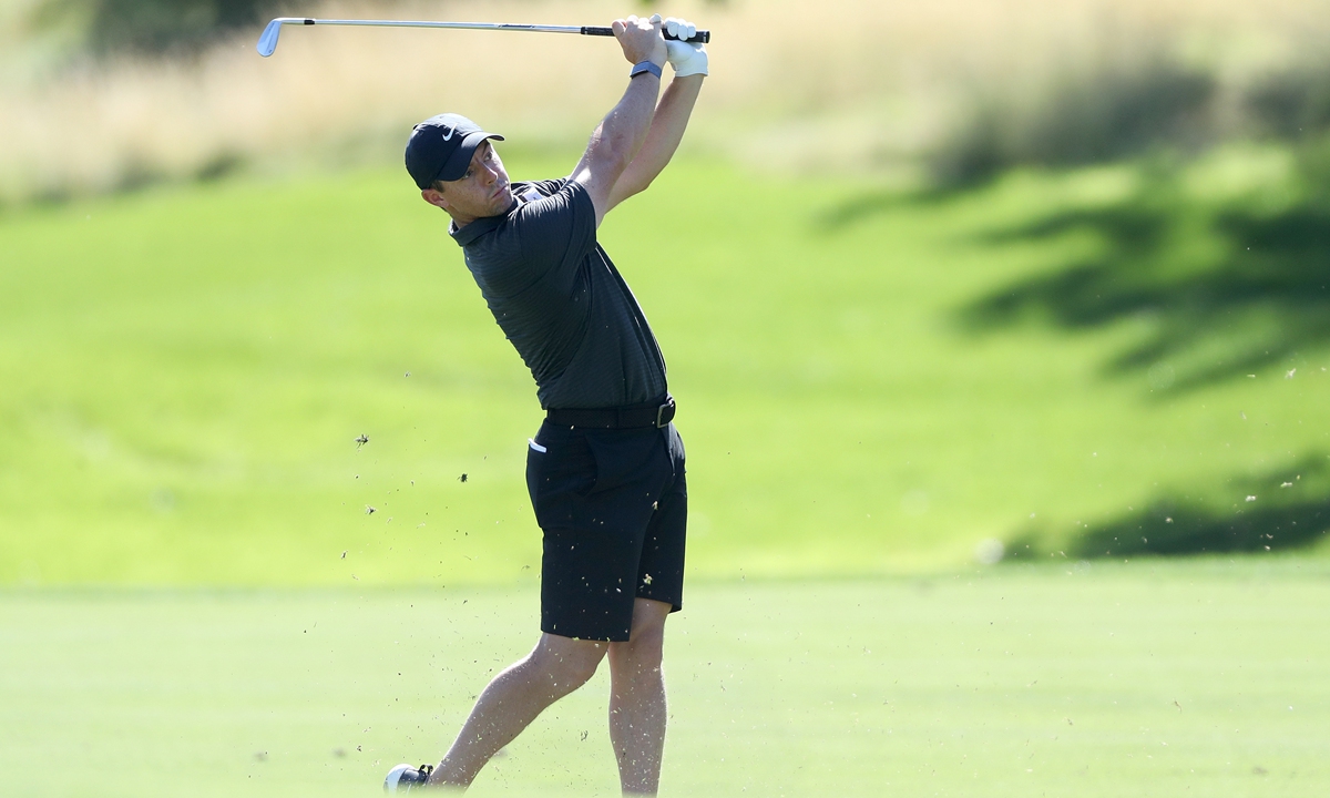 Rory McIlroy hits out of the 15th fairway during practice for the CJ Cup on Tuesday in Las Vegas. Photo: IC