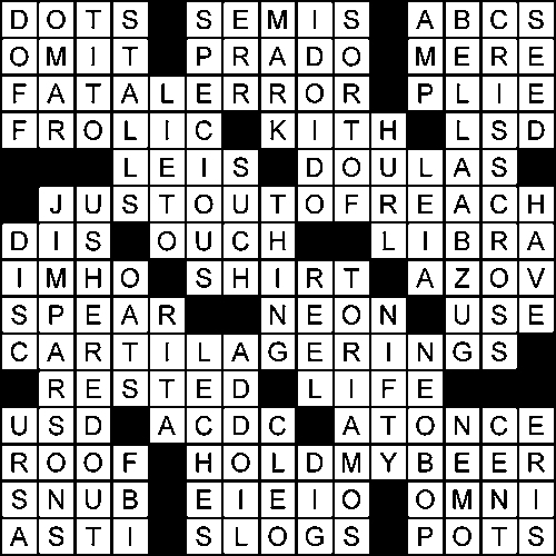 61 Words before a stunt, and a hint to 17-, 28- and 46-Across