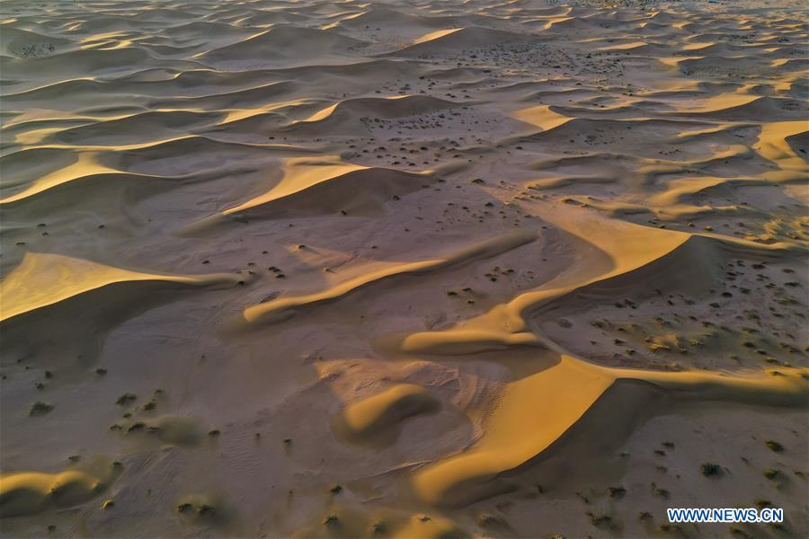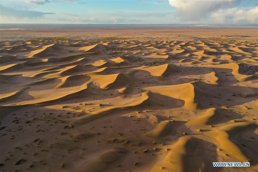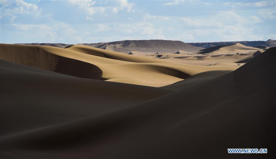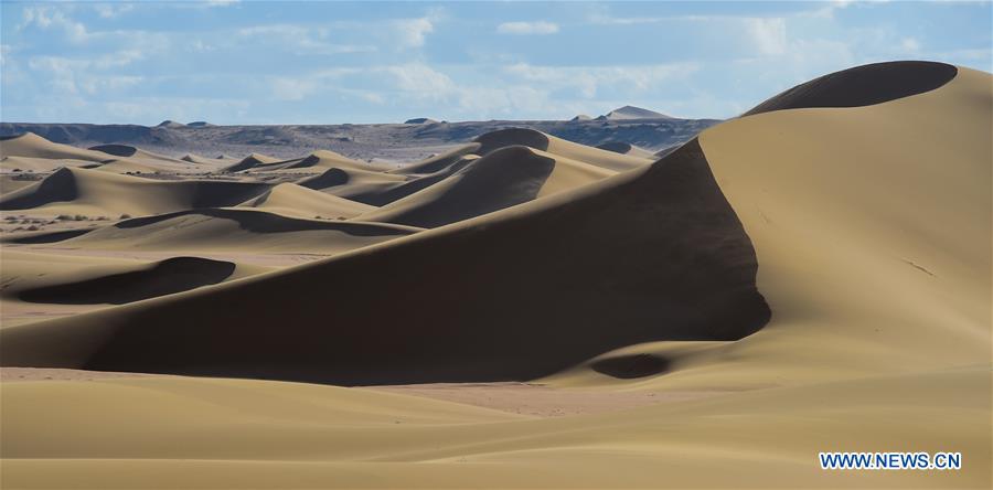 Photo taken on Oct. 15, 2020 shows a view of the Badain Jaran Desert in north China's Inner Mongolia Autonomous Region. (Xinhua/Lian Zhen)