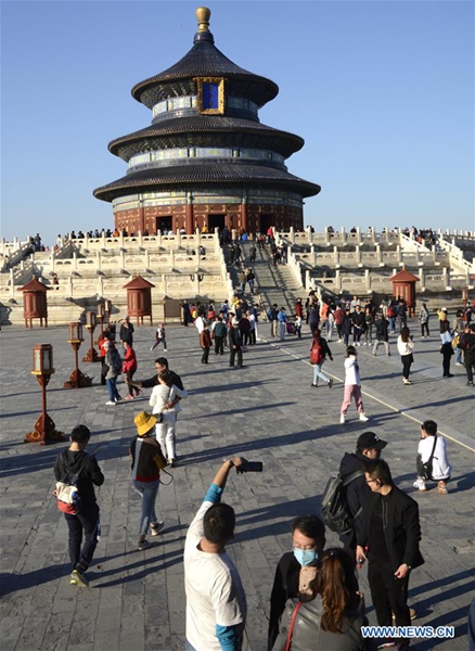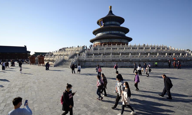 People visit the Temple of Heaven in Beijng, capital of China, Oct. 17, 2020. (Xinhua/Li Xin)