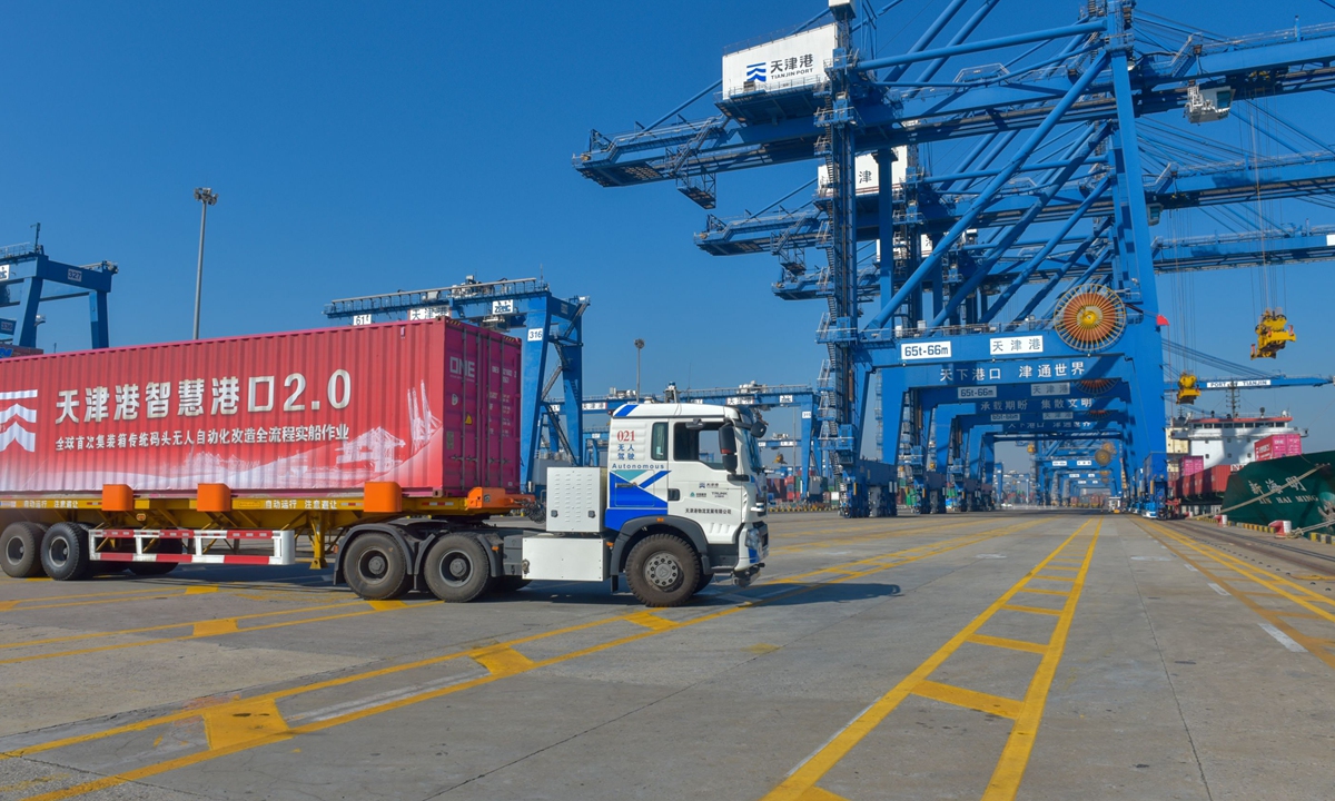 An automated container terminal in Tianjin Port in North China's Tianjin Municipality over the weekend. Automation was completed at the port as of Saturday. Photo: CNSphoto