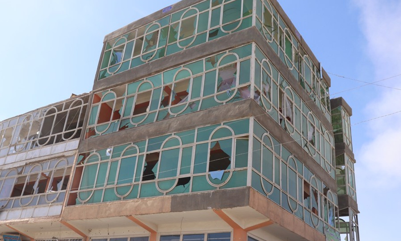 Photo taken on Oct. 18, 2020 shows a damaged building after a blast struck the provincial police office in Firoz Koah, capital of Afghanistan's western Ghor province. (Str/Xinhua)