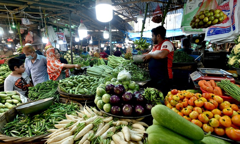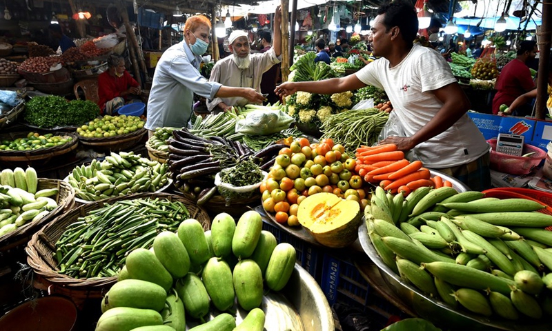 A man buys vegetables at a mega marketplace in Dhaka, Bangladesh on Oct. 18, 2020. (Xinhua)