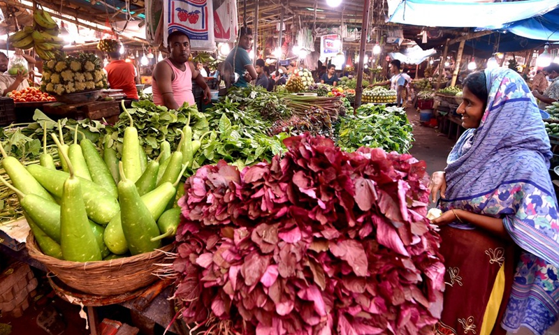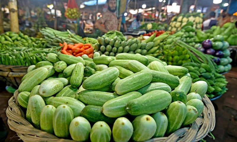 Photo taken on Oct. 18, 2020 shows vegetables at a mega marketplace in Dhaka, Bangladesh. (Xinhua)