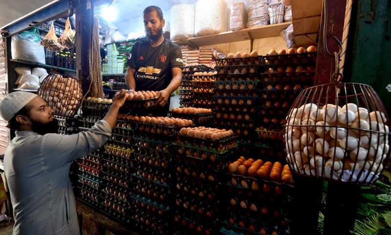 A man buys eggs at a mega marketplace in Dhaka, Bangladesh on Oct. 18, 2020. (Xinhua)