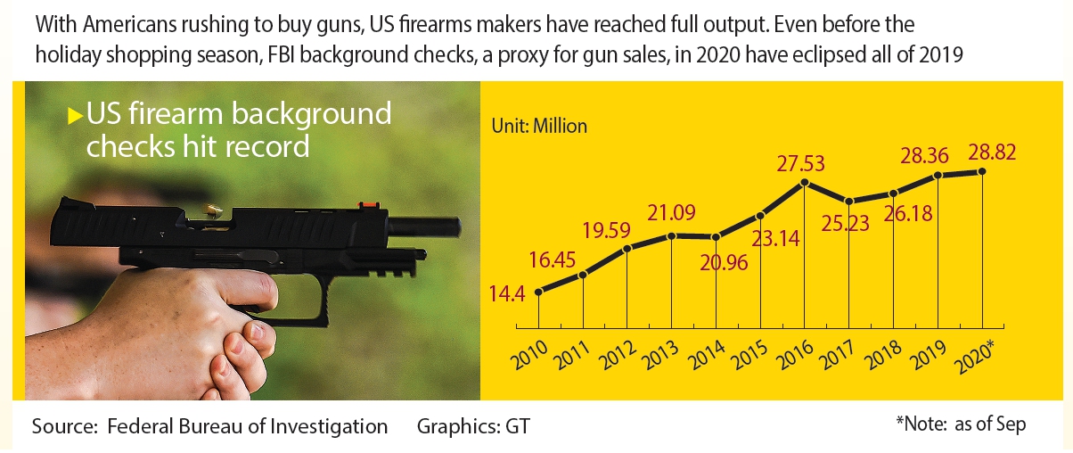 Like legions of other first-time buyers who are contributing to record sales for the US gun industry in 2020, Garland's decision to take up arms is driven in part by disturbing news about the coronavirus pandemic, social unrest over police killings of black people and a potentially contested election that many fear could spark violence.