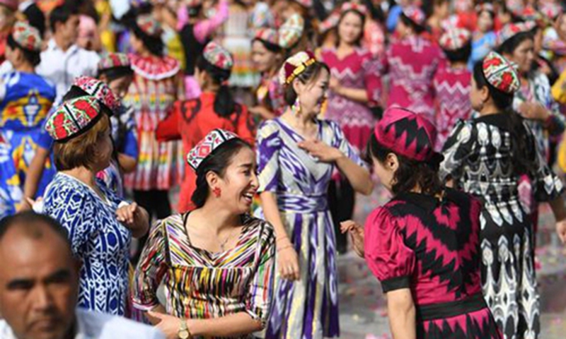 People attend a culture and tourism festival themed on Dolan and Qiuci culture in Awat County of Aksu Prefecture, northwest China's Xinjiang Uygur Autonomous region, Oct. 25, 2019. The festival kicked off recently in Aksu Prefecture. Photo: Xinhua