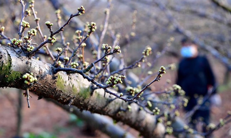 Photo taken on Feb. 22, 2020 shows fruit trees at an orchard in Yangtian Village of Xichuan County in Nanyang, central China's Henan Province. As part of the water source of the middle route of China's south-to-north water diversion project, Xichuan County has made much progress in both ecological protection and poverty alleviation.Photo:Xinhua