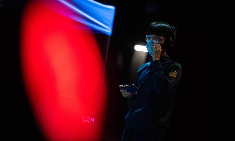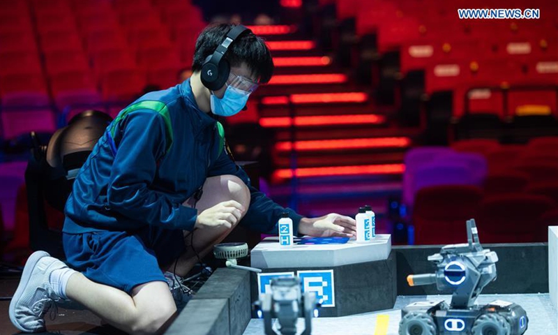 A contestant takes part in the RoboMaster 2020 Youth Tournament in Macao, south China on Oct. 21, 2020. A total of 18 teams from 10 middle schools participated in the robotics competition here on Wednesday.Photo:Xinhua