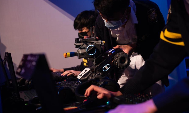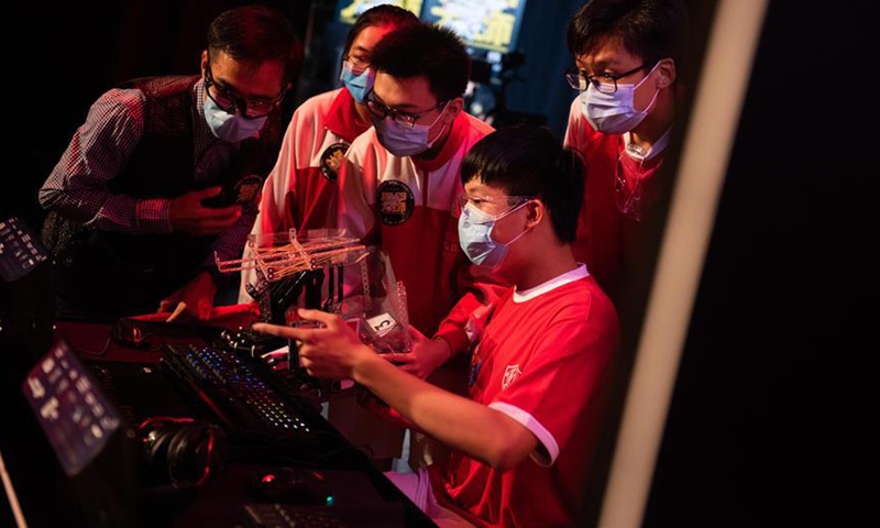 Contestants take part in the RoboMaster 2020 Youth Tournament in Macao, south China on Oct. 21, 2020. A total of 18 teams from 10 middle schools participated in the robotics competition here on Wednesday. Photo:Xinhua