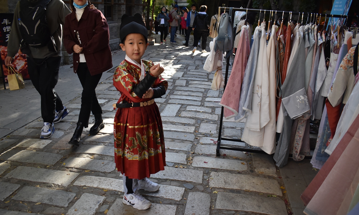 A boy dressed in the costume of the Embroidered Uniform Guard in Beijing Wtown Photo: Chen Xi/GT