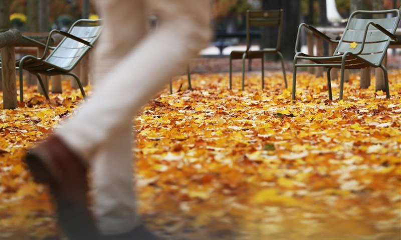 Fallen leaves are seen at the Luxembourg park in Paris, France, Oct. 23, 2020.Photo:Xinhua