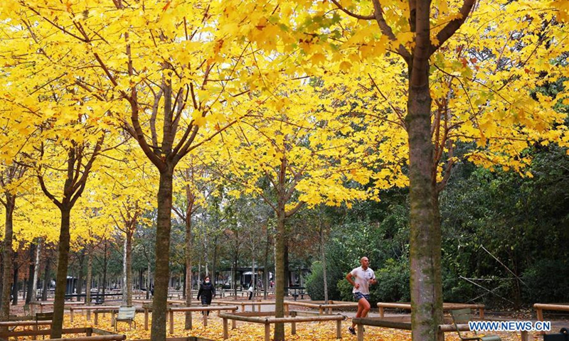 A man runs at the Luxembourg park in Paris, France, Oct. 23, 2020.Photo:Xinhua