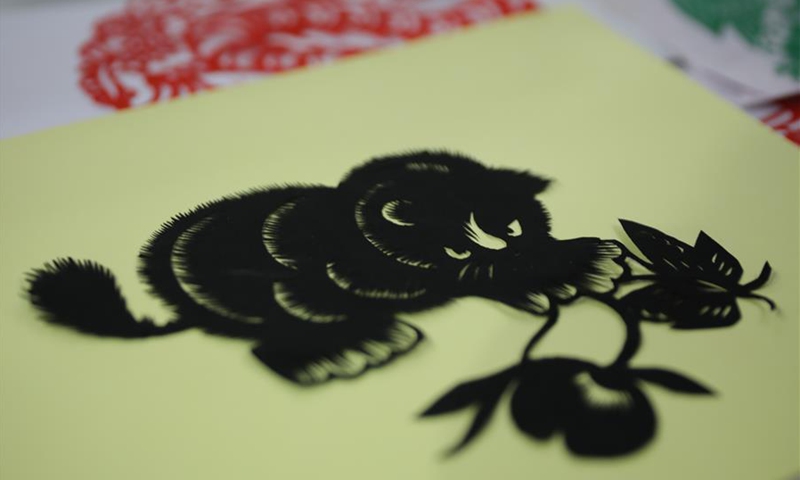 Photo taken on Oct. 24, 2020 shows paper-cutting works made by a local artist in Huining County, northwest China's Gansu Province. Local government has stepped up efforts to protect the Huining paper-cutting, an old art which was listed in the national intangible cultural heritage list of China in 2011. (Xinhua/Du Zheyu)