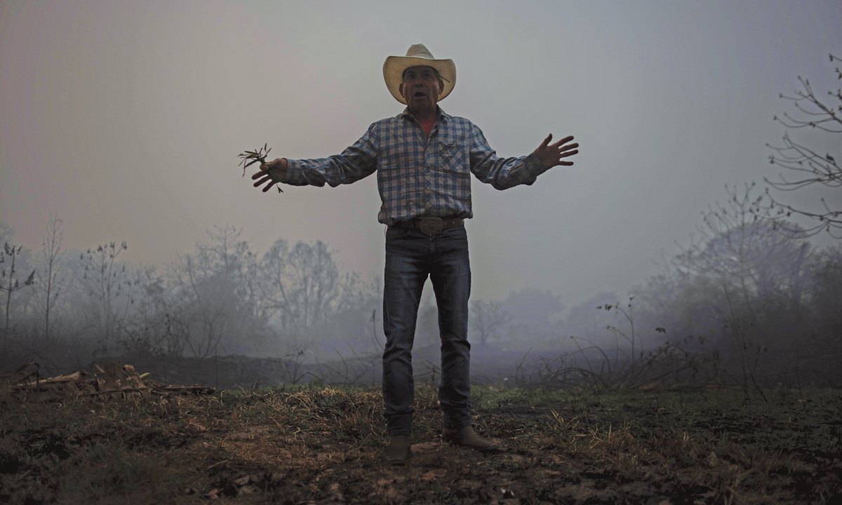 A man gestures in a burnt area of the Pantanal, near the Transpantaneira park road which crosses the world's largest tropical wetland, in Mato Grosso State, Brazil, on September 13.