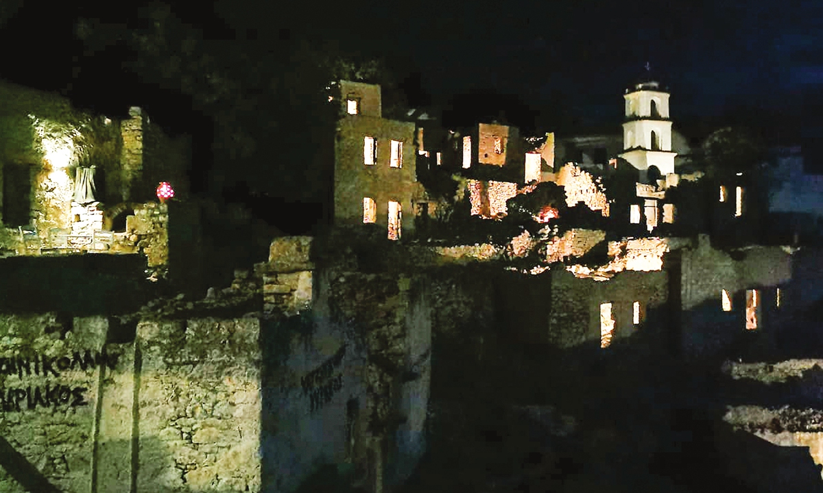 When night falls, Mikro Chorio (Little Village in Greek) rewakens, as a handful of visitors sip cocktails at the small bar-museum at the foot of the ruins.