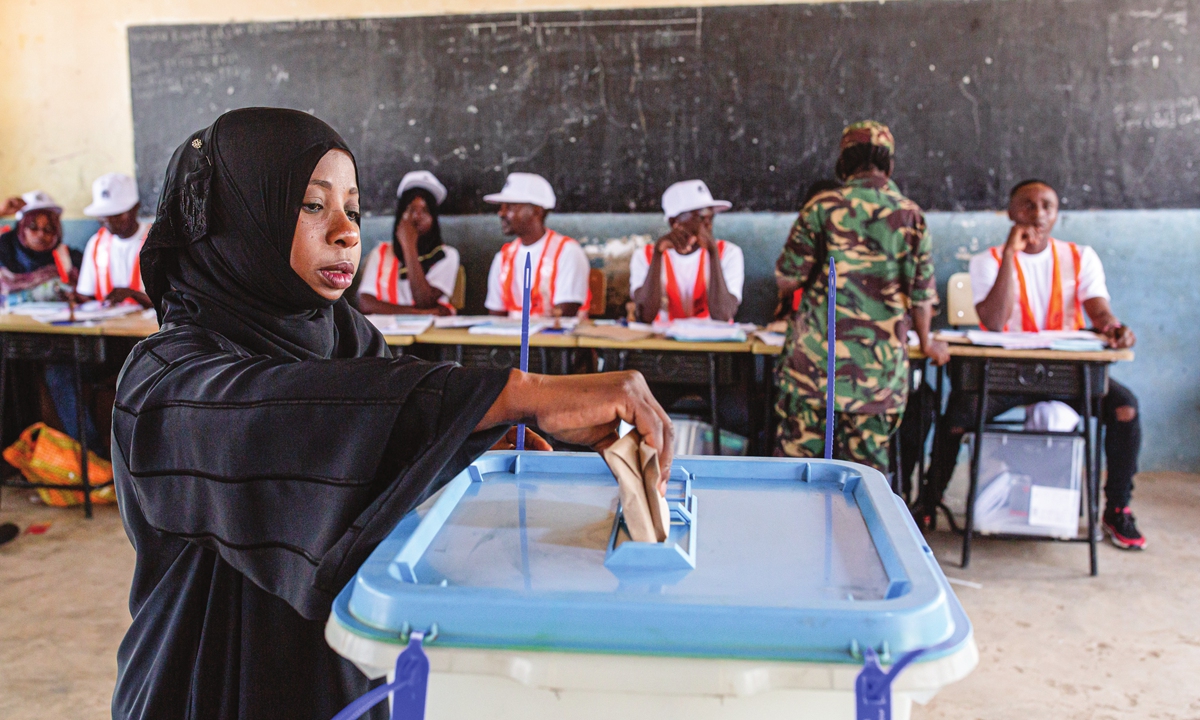 A woman casts her special ballot at Mtupepo Primary School in Daraja Bovu, Zanzibar, Tanzania on Tuesday. Tanzania's electoral body, the National Electoral Commission, announced on September 29 that it would be setting a total of 80,155 polling centers ahead of the October 28 general elections, and about 29 million Tanzanians have registered to vote in 2020's election. Photo: AFP
