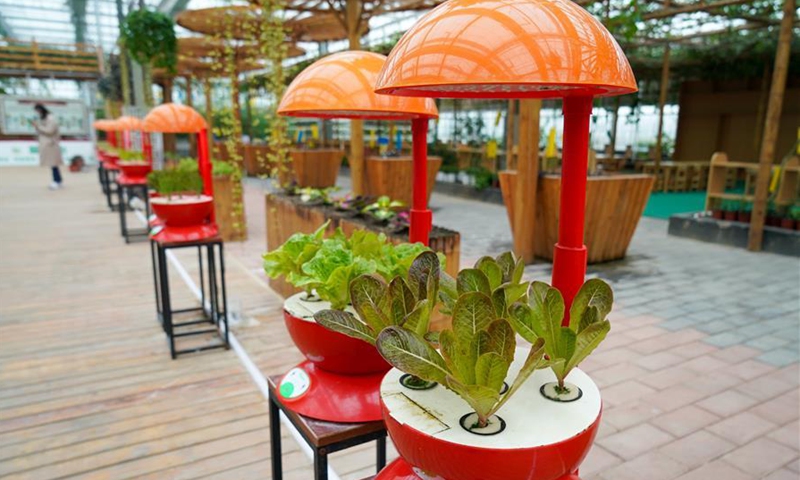 Photo taken on Oct. 27, 2020 shows a hydroponic farm at a modern agricultural park in Tongshan District, Xuzhou, east China's Jiangsu Province. Authorities in Tongshan District have taken steps to optimize the local agricultural sector by combining modern agriculture with urban tourism. Altogether, the district's 300-plus agritourism parks have received some four million visitors in 2019. (Xinhua/Li Bo)