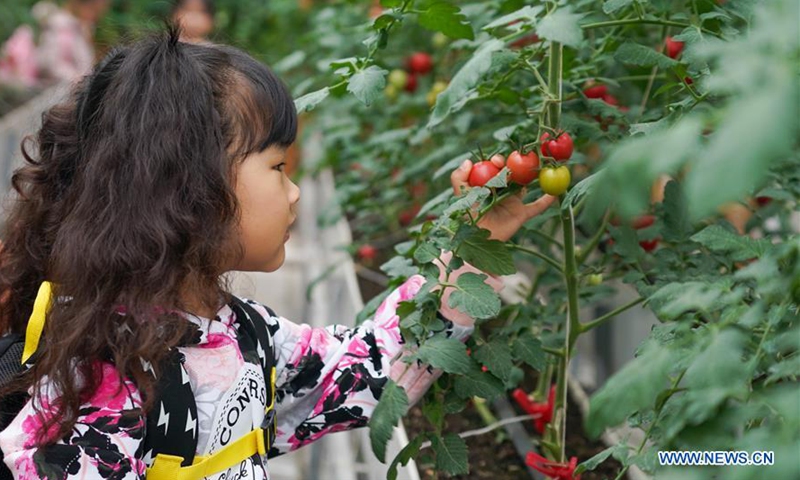 A girl visits a modern agricultural industry park in Tongshan District, Xuzhou, east China's Jiangsu Province, Oct. 27, 2020. Authorities in Tongshan District have taken steps to optimize the local agricultural sector by combining modern agriculture with urban tourism. Altogether, the district's 300-plus agritourism parks have received some four million visitors in 2019. (Xinhua/Li Bo)