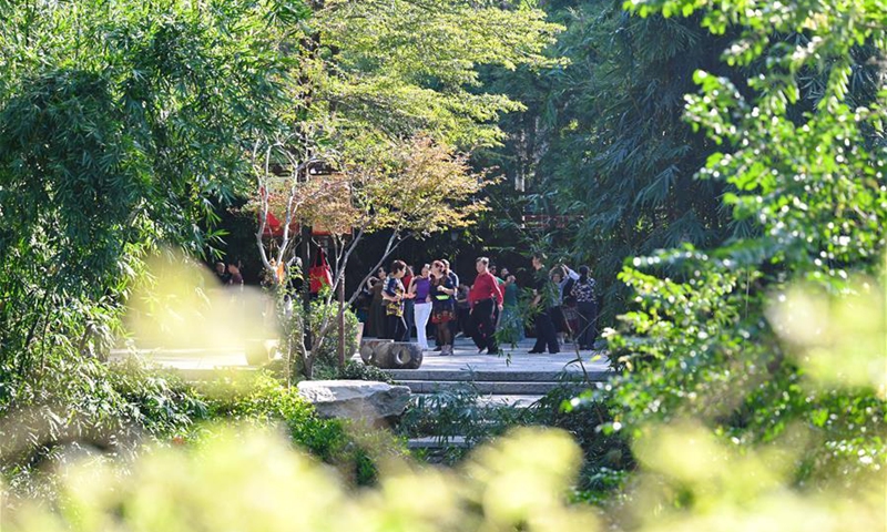 People do morning exercises at Chuanzhu Park in Fuzhou, southeast China's Fujian Province, Oct. 27, 2020. (Xinhua/Lin Shanchuan)