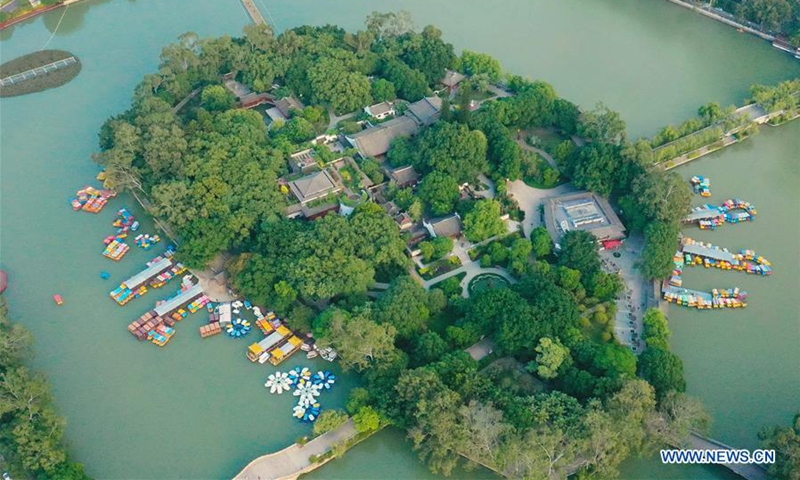 Aerial photo taken on Oct. 23, 2020 shows a view of Xihu Park in Fuzhou, southeast China's Fujian Province. (Xinhua/Lin Shanchuan)