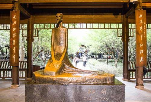 A statue of Du Fu sits in the Du Fu Thatched Cottage in Chengdu, Sichuan Province. Photo: IC