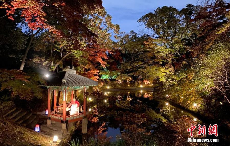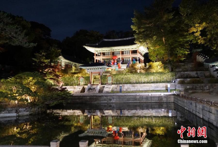 Performers showcase traditional performance at the Changdeokgung Palace during a moonlight tour in Seoul, South Korea, Oct. 29, 2020. Changdeokgung Palace was listed as a UNESCO world heritage site in 1997 and is regarded as a masterpiece of architecture as the buildings are in harmony with the natural settings. (Photo/China News Service)