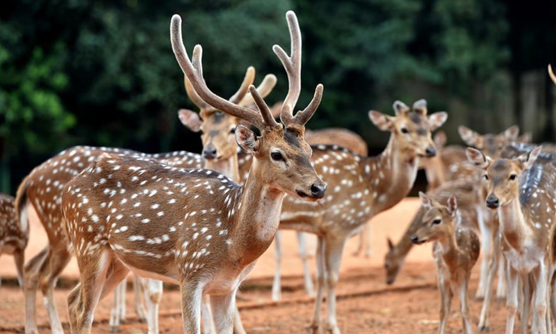 Deer are seen in an enclosure at the Bangladesh National Zoo in Dhaka, capital of Bangladesh, Nov. 1, 2020. Bangladesh National Zoo in the Mirpur section of capital Dhaka reopened to public Sunday with new safety guidelines after some eight months of shutdown due to the COVID-19 pandemic. (Xinhua)