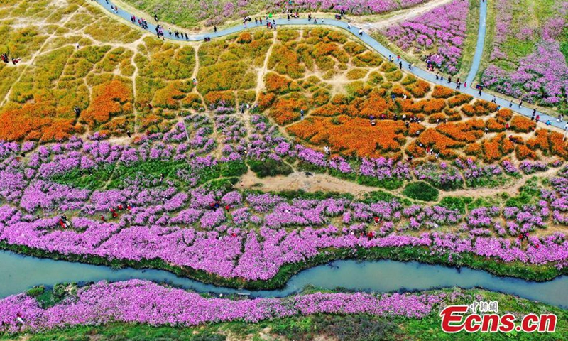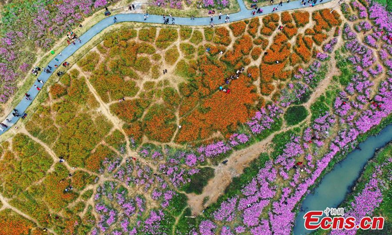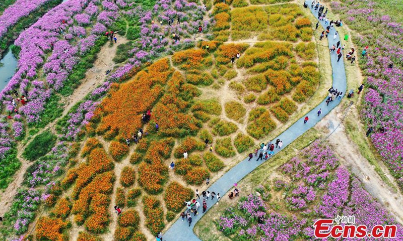 Photo taken on Nov. 1, 2020 shows the spectacular flower fields in Nanchang, East China's Jiangxi Province. Sunflowers, galsang flowers and chrysanthemums attract a large number of tourists to the Malan Huahai Park in Nancang. (Photo: China News Service / Liu Zhankun)