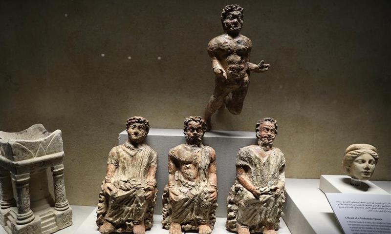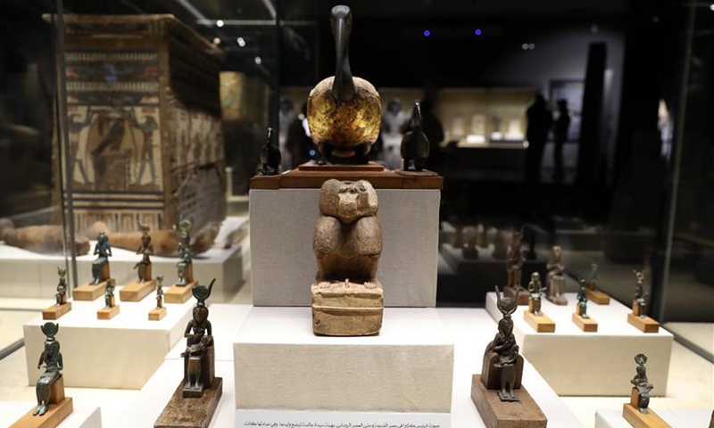 Photo taken on Nov. 2, 2020 shows the artifacts in the Kafr El-Sheikh Museum in Kafr El-Sheikh, Egypt. The Kafr El-Sheikh Museum opened its door to visitors on Monday. The museum consists of three main exhibition halls, displaying the regional history and many artifacts uncovered in Kafr El-Sheikh Governorate. (Xinhua/Ahmed Gomaa)