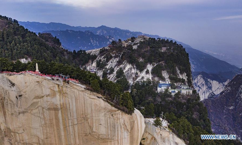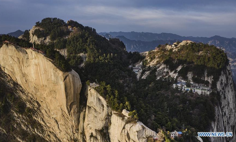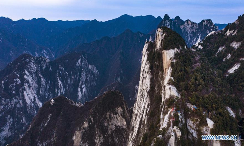 Aerial photo taken on Nov. 3, 2020 shows a view of Mount Huashan in northwest China's Shaanxi Province. (Xinhua/Tao Ming)