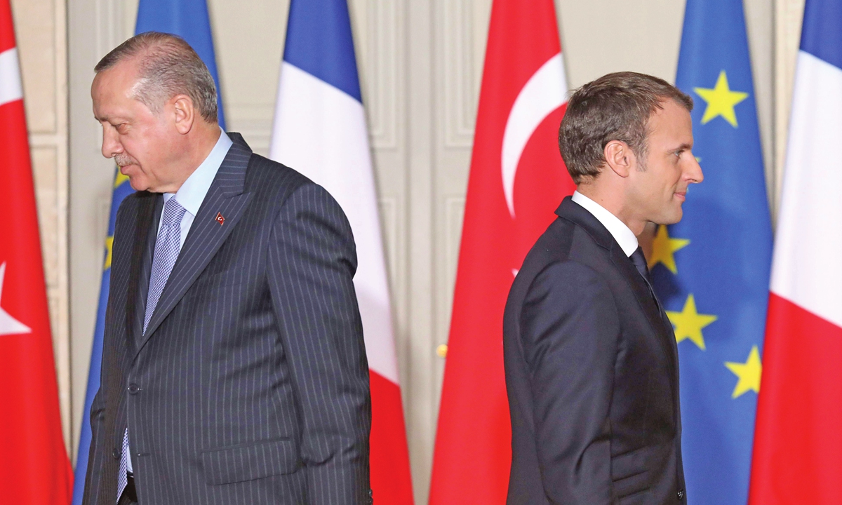French President Macron (right) and Turkish President Recep Tayyip Erdogan attend a joint press conference in Paris, France on January 5, 2018. Photo: VCG