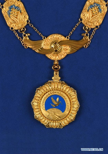 This photo shows the friendship medal of the People's Republic of China. (Xinhua)